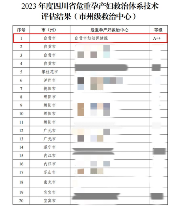 自贡市妇幼保健院危重孕产妇救治体系技术获评全省最高等级“A++”奇侠优配